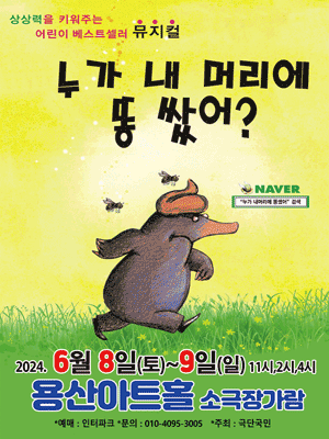 | PF237158 | 누가 내 머리에 똥 쌌어? [노원] | 2024.04.13 | 2024.04.13 | ![]() | 뮤지컬 | △ |