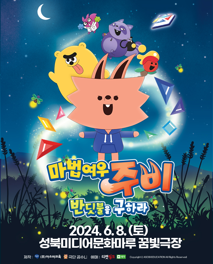 | PF237372 | 마법여우 주비: 반딧불을 구하라 [서울 성북] | 2024.06.08 | 2024.06.08 | ![]() | 뮤지컬 | △ |