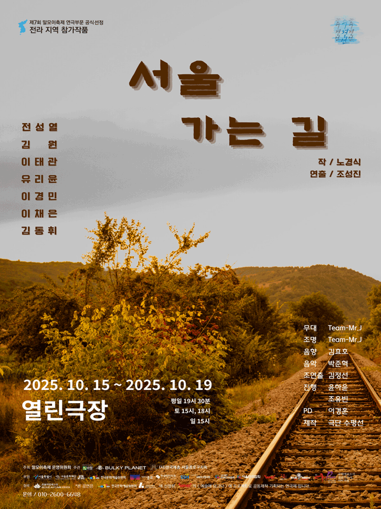 | PF275214 | 제7회 말모이축제, 전라도 부문: 서울 가는 길 | 2025.10.15 | 2025.10.19 | ![]() | 연극 | △ |