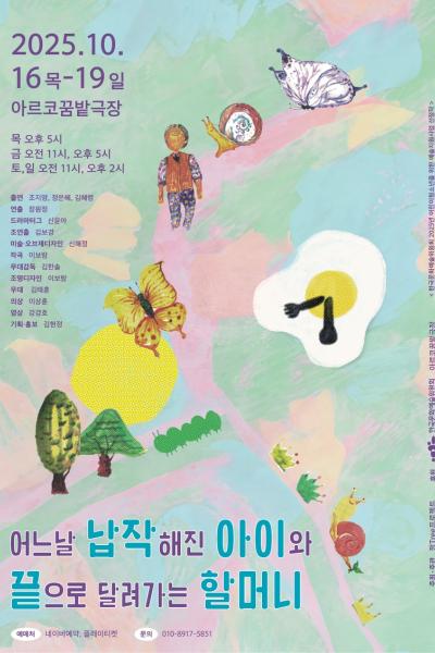 | PF275225 | 어느날 납작해진 아이와 끝으로 달려가는 할머니 [대학로] | 2025.10.16 | 2025.10.19 | ![]() | 연극 | △ |