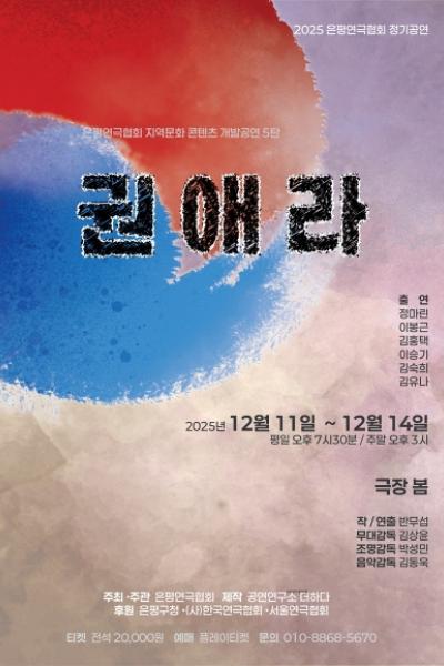 | PF281101 | 권애라 | 2025.12.11 | 2025.12.14 | ![]() | 연극 | △ |